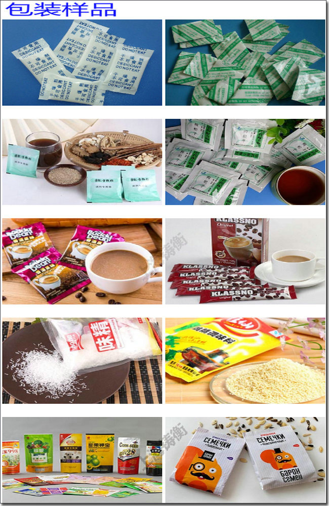 上海铸衡工厂生产的这款小型全自动调味品颗粒包装机主要适用于包装速溶咖啡、白糖颗粒、凉茶颗粒、小米、西米、种子、青豆、豆类、五谷杂粮和食品颗粒等细小颗粒、圆形颗粒、小长条状颗粒等物品,0.2-1000克小剂量的自动包装,主要包装材料为复合腹,无纺布,纸塑膜等材料,是在高温下粘合的,包装机能够自动的完成计量、充填、制袋、封合、切断、记数、打印日期等功能。