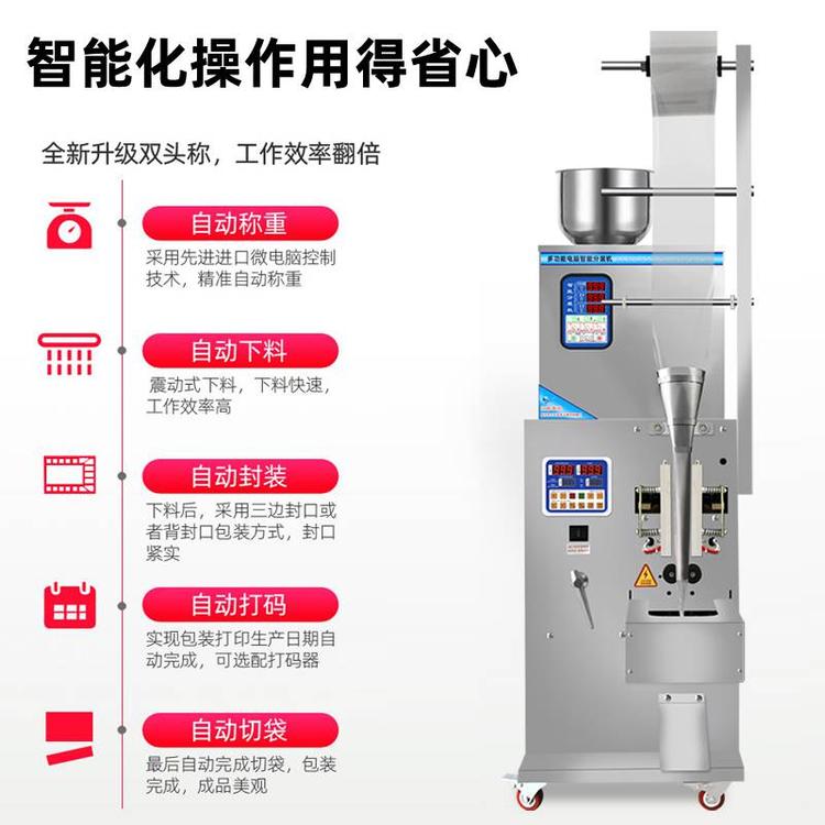 200克食品全自动智能包装机推荐上海铸衡工厂销售食品全自动包装机是结合了我司先进包装技术,性能更稳定功能更强大,是一款集自动制袋装袋封口于一体的新型电子机械产品,让用户真正感受科技创新的魅力。包装机适用于食品、医药、化工产品中的松散、无粘性、颗粒状物料的自动包装,如:花生、瓜子、麦片、碎干食面、冲剂、干燥剂、味精、白糖、食盐、洗衣粉等。