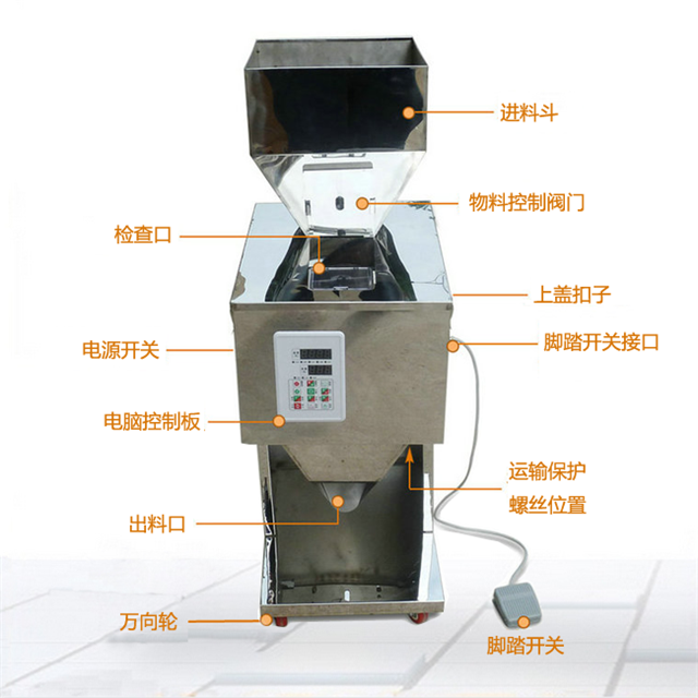 ◆ 分装机采用不锈钢送料,通道卫生,环保,不损碎物料
