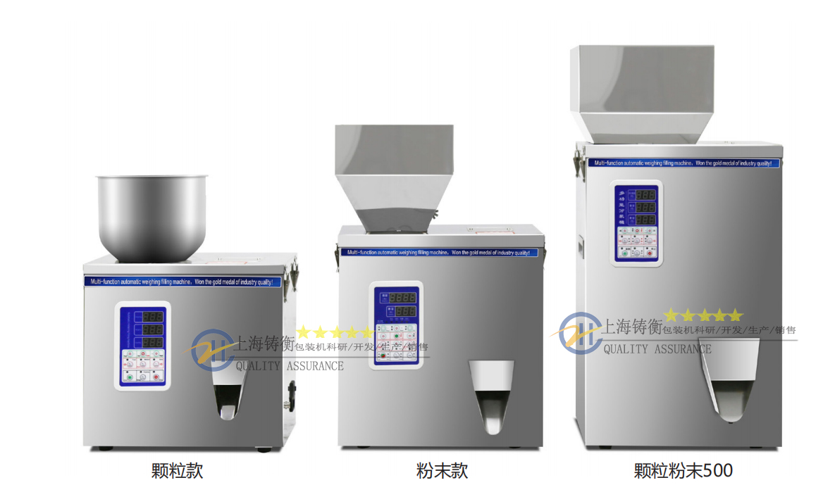 上海铸衡工厂生产的这款粉末分装机是用简单的方式振动快慢加料,红外线感应放料,更有效地促进定量准确,要求人工套袋、可以选择电子感应落料或者脚踏式控制落料,全不锈钢密封机体,具有防腐、防尘之功效。分装机广泛应用于大米,谷物,药材,茶叶,干货,零件,水果,调味料,种子,粉状物,化肥等物料的定量分装。