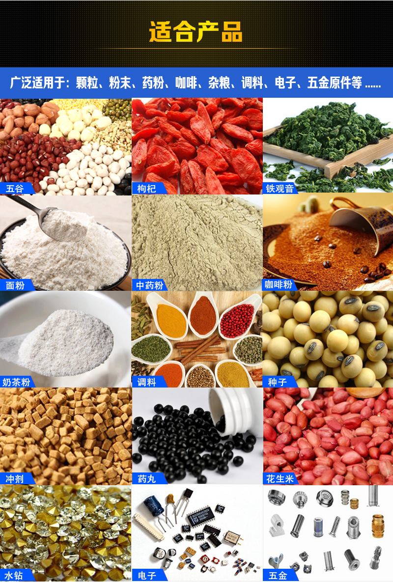 上海工厂生产的这款种子颗粒小型分装机可以根据用户物料需求快中慢三速调节,提高了顾客包装效益,节省了人工称重时间,提高了产品包装数量。购买分装机的五大优点,科技,节能,高品质,价格优惠。分装机适用于大米,谷物,药材,茶叶,干货,零件,水果,调味料,种子,粉状物,化肥等一般的非粘性固体物料。
