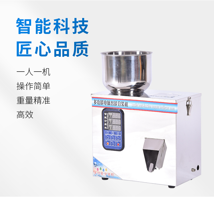 上海铸衡工厂生产的这款震动食品分装机可以根据用户物料需求快中慢三速调节,提高了顾客包装效益,节省了人工称重时间,提高了产品包装数量。购买分装机的五大优点,科技,节能,高品质,价格优惠。分装机适用于大米,谷物,药材,茶叶,干货,零件,水果,调味料,种子,粉状物,化肥等一般的非粘性固体物料。