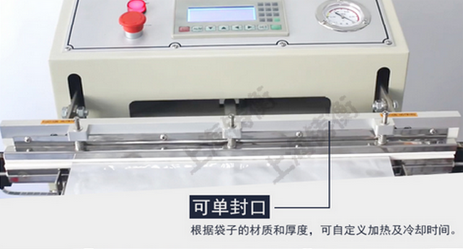 1、该外抽式真空包装机集封口、抽真空等于一体,且热封系统能够任意选择热容性包装材料,封口的长度能够跟据用户的需求在特定范围内进行调整;