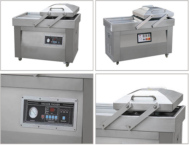 上海铸衡工厂生产的这款大米手提袋装双室真空包装机是具有双真空室的高速真空包装机型产品,有多种型号可以选择,如:400型、500型、600型等,还有很多不同样式,如:平板、下凹、倾斜等等,双室真空包装机主要是利用食物霉腐变质的原理把微生物(导制食品变质的元素)赖以生存的氧气抽掉,从而达到,防霉腐及防氧化的功能。