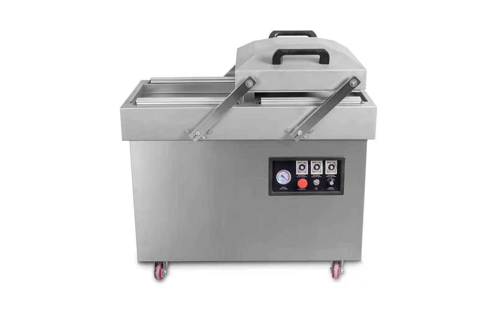 3、双室真空包装机采用平板真空室设计,方便对在包装过程中掉落的油脂、碎屑等物的清洁、擦拭。主体结构材料均为304不锈钢,符合食品卫生要求。