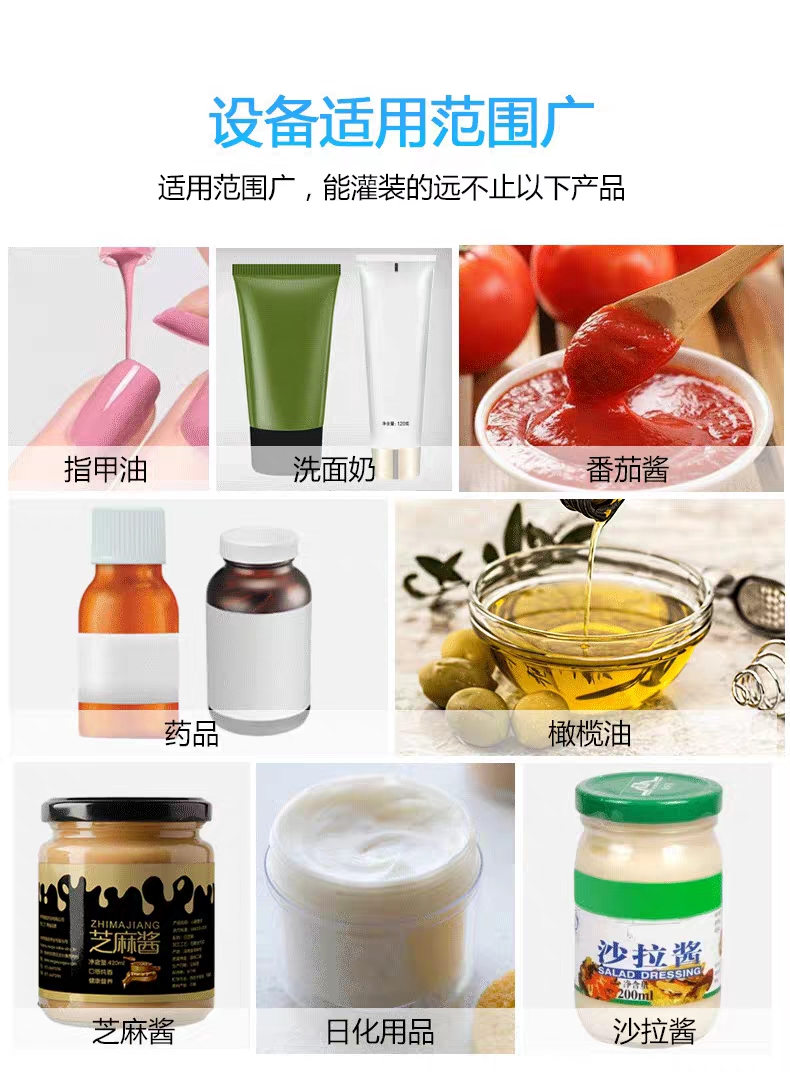 2、液体灌装机适用于食品、日化、医药、化工等行业无颗粒、不含气液体物料灌装;